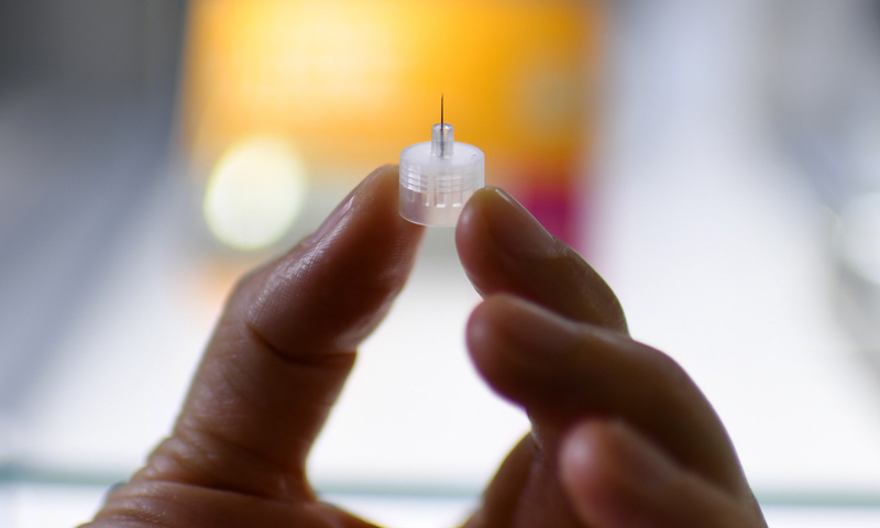 全球(qiu)最短、最細(xi)胰島素注射針現身進博會,這(zhe)是(shi)該款(kuan)新品在日本市(shi)場以(yi)外(wai)的首(shou)次展出。(人(ren)民網記者 翁奇羽 攝)