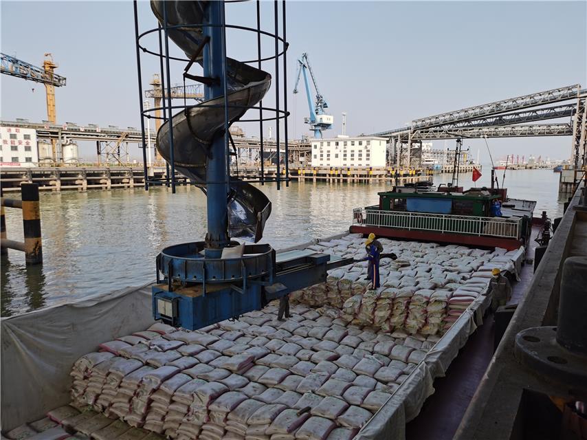 2月(yue)4日(ri),在中(zhong)儲糧(liang)油脂(zhi)公司鎮(zhen)江基地(di)碼頭,一些工(gong)人正(zheng)在把包裝好的(de)豆粕(po)裝上一艘貨船(chuan)。中(zhong)儲糧(liang)油脂(zhi)公司總經(jing)理(li)助(zhu)理(li)、鎮(zhen)江基地(di)黨委書記張中(zhong)說(shuo),這船(chuan)豆粕(po)是(shi)準(zhun)備運往湖北支援當地(di)養(yang)殖企業的(de)。