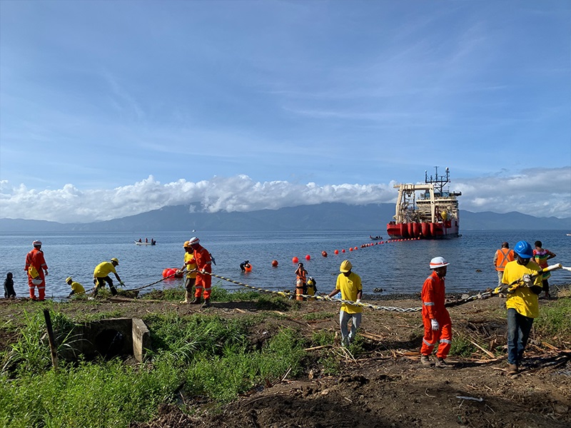 中機公司(si)巴(ba)布亞(ya)新幾內亞(ya)海(hai)底(di)光(guang)纜(lan)(lan)項目組積極與聯合體(ti)、分包單(dan)位(wei)高(gao)頻(pin)次聯系,分析疫情(qing)對人員派出、施工的(de)影響,迅速啟動(dong)與業主、使館經商參(can)處(chu)、醫療(liao)隊的(de)溝通協調,目前部分施工人員已經提(ti)前抵達巴(ba)新進行自我隔離,海(hai)纜(lan)(lan)施工船(chuan)已于2月11日抵達巴(ba)新,3500公里海(hai)底(di)光(guang)纜(lan)(lan)的(de)敷(fu)設工作已正式啟動(dong)。