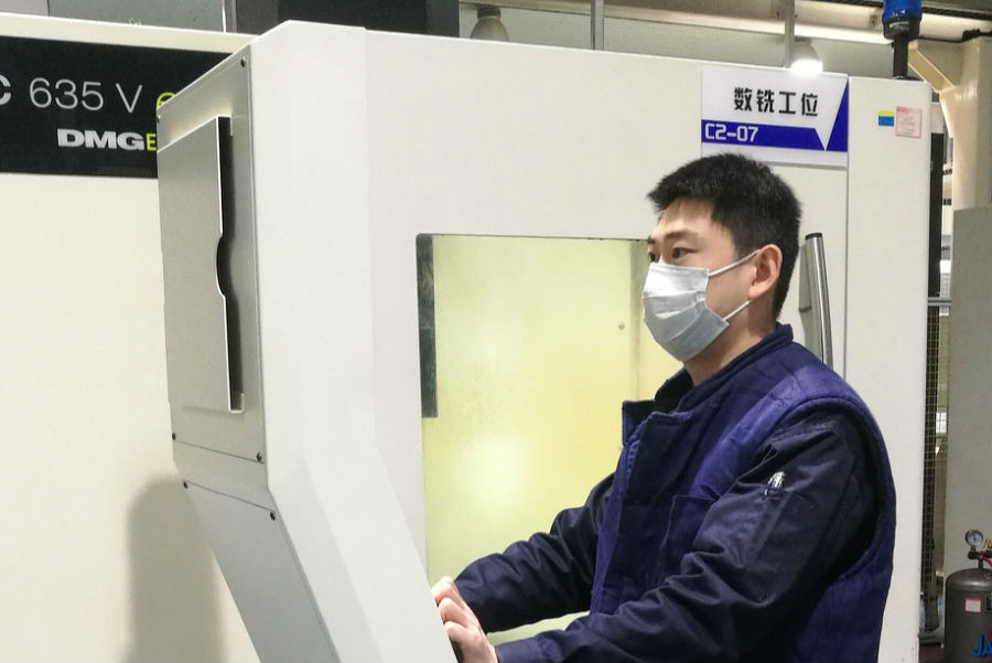 數控組(zu)副組(zu)長(chang)田嘯(xiao)孩(hai)子不到(dao)1歲,但他每天早早來到(dao)單位安(an)排大家做好防護措施,組(zu)織生產(chan)準(zhun)備工(gong)作。他說:“我(wo)年輕(qing),又(you)是副組(zu)長(chang),應該多干一點。”