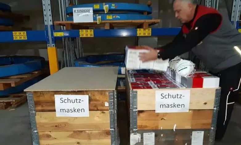 中聯重科海外員工在打包口罩、防護服等物資發往國內