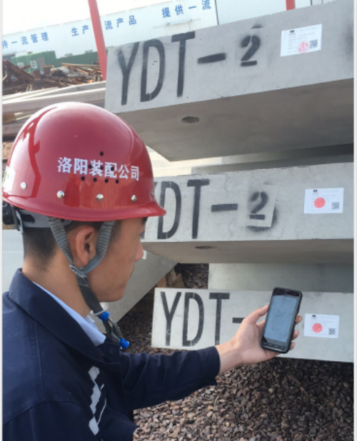剛剛入職中國電建的馬俊剛在掃二維碼登記構件入庫情況
