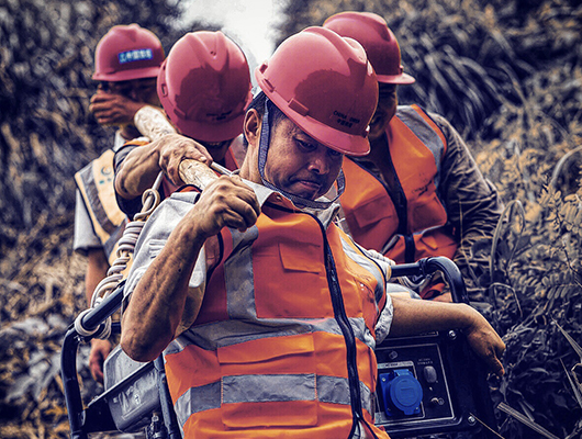 2019年6月11日,中國鐵塔懷化分公司一線搶修人員扛著油機發電機趕往鐵路旁的一處高山基站,全力保障通信暢通。中國鐵塔積極履行企業責任,圓滿完成抗戰勝利70周年閱兵活動、黨的十九大、世界軍運會等重大通信保障,全力投入臺風、地震、洪澇災害等各類應急通信保障任務,得到各界高度肯定。