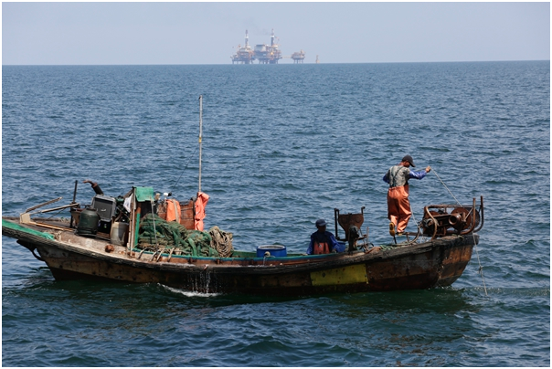 2017年9月1日,禁漁期結束后的第一天,趕海的漁民像約定好了一樣直奔海上油區。近年打漁經驗告訴他們,海上油區零排放,魚兒都愿意往那里扎堆。