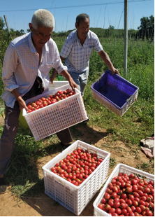 2019年中國航材支持古槐村,村民在蘋果幼園中露天套種的航天品種圣女果喜獲豐收