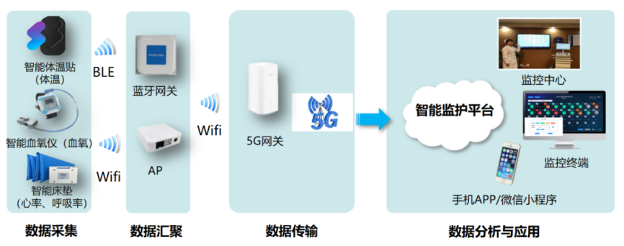 “5G動態體征監護系統”針對(dui)不同場景與人群有不同方(fang)(fang)式的解決(jue)方(fang)(fang)案。