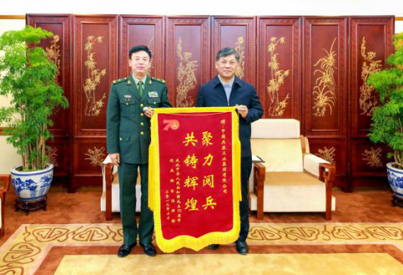 2019年10月(yue)1日,習(xi)主席通令嘉(jia)獎國慶全體閱(yue)(yue)兵(bing)人員,對參與保障人員提出了(le)“密切協作、默默付出”的嘉(jia)獎。集團公司閱(yue)(yue)兵(bing)保障工作得(de)到了(le)中(zhong)華全國總工會、中(zhong)央(yang)軍委裝備(bei)發展部、中(zhong)部戰區、陸軍、海軍、武警等各級領(ling)導(dao)和首長(chang)的一致好評,閱(yue)(yue)兵(bing)聯合指(zhi)揮部領(ling)導(dao)親赴集團公司致謝(xie)、贈送“聚(ju)力閱(yue)(yue)兵(bing)、共鑄輝煌”錦旗,并(bing)給予了(le)“沒有兵(bing)器(qi)工業、就沒有閱(yue)(yue)兵(bing)精彩”的高度評價。