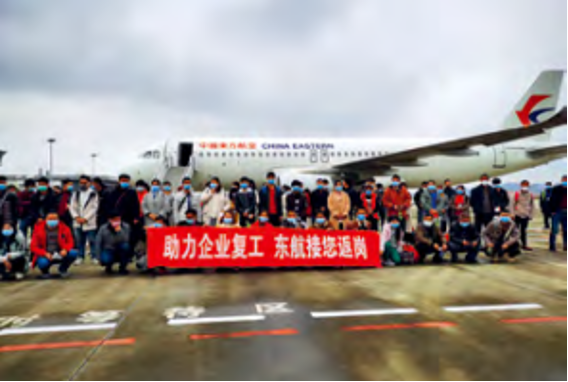 2月24日,東航首班“上海復工包機”助力城市復工復產
