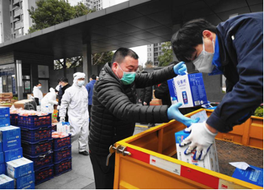 華僑城物業員工正在為小區業主搬運生活必需品
