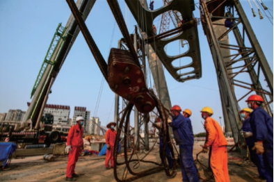 華僑城集團積極推進復工復產,圖為深圳歡樂港灣項目建設工地,工人們緊張有序地進行“灣區之光”摩天輪安裝工作