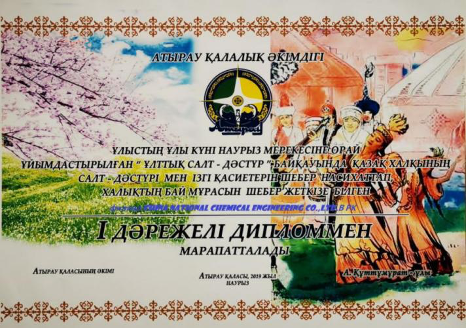 2019年3月21日,根據(ju)阿特勞(lao)市政府(fu)的(de)(de)規劃和邀(yao)請,分公(gong)司積極組織員工參加“納烏(wu)魯茲”節(jie)活動。納烏(wu)魯茲節(jie)是(shi)哈薩克人的(de)(de)春節(jie),預示著送走(zou)了寒(han)冬(dong),迎(ying)來了朝氣(qi)蓬勃的(de)(de)春天。