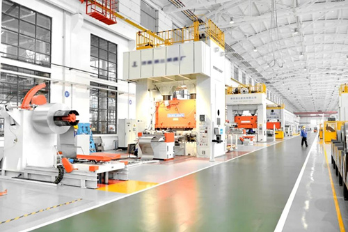 在東方電機沖(chong)剪車間里,多臺(tai)上百噸(dun)的(de)沖(chong)床(chuang)正聯動進行(xing)著1800次/小(xiao)時的(de)快速節拍(pai)運動,同時將約50個5噸(dun)重的(de)大鋼(gang)卷在數分(fen)鐘內變(bian)成一張張形狀各異(yi)的(de)小(xiao)鋼(gang)片(pian)。