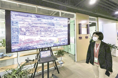 在上海市閔行區紫竹國家高新技術產業開發區一家企業內,負責人在展示智能化街道管理系統。新華社發(王翔 攝)