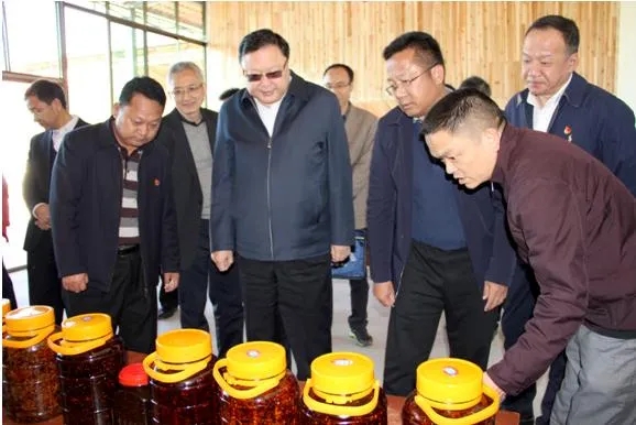 中國有色集團黨委書記、董事長王彤宙到幫扶建設的梁河縣高山生態腌臘加工廠考察