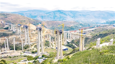 近期,中老鐵路玉溪至磨憨段有序復工復產,由中鐵四局承建的中老鐵路全線重點控制性工程——元江特大橋、南溪河特大橋正在加緊施工建設。這是南溪河特大橋橫跨在建高速公路。