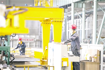 駐哈爾濱重點央企中鋁集團東北輕合金有限責任公司的廠區中,工人在車間生產作業。