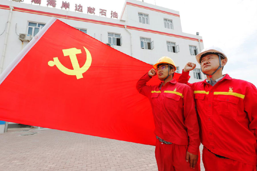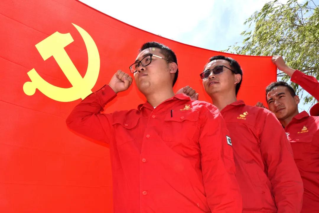 我們來自中國石油冀東油田,我們在黨旗下宣誓,為黨慶生。