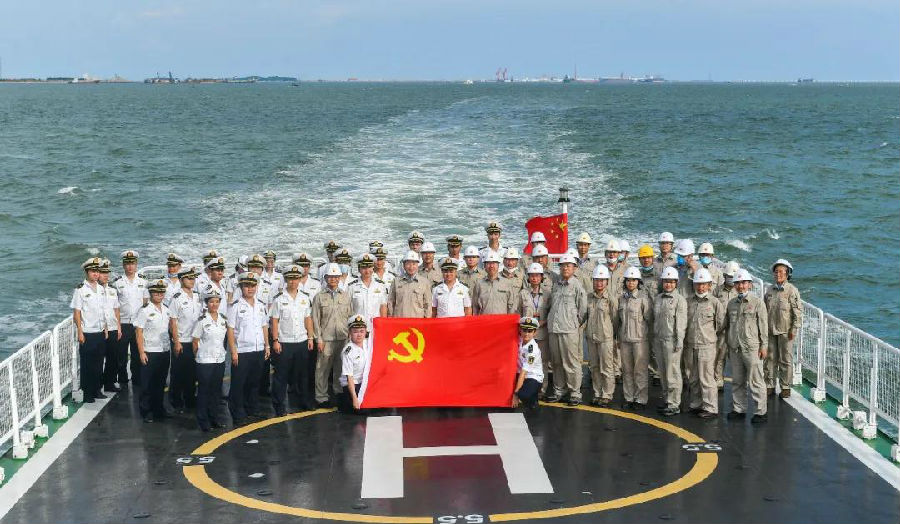 我們來自中國石油廣西石化,我們在北部灣畔與欽州海事局聯合開展黨建活動,為黨慶生。