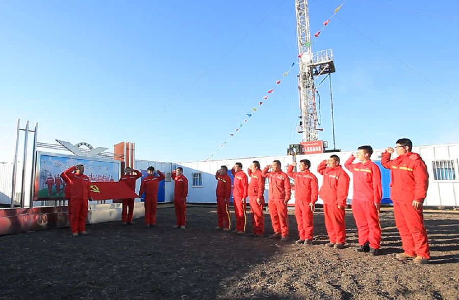 我們來自中國石油大慶油田,我們在1205鉆井隊鉆塔下莊嚴宣誓,為黨慶生。