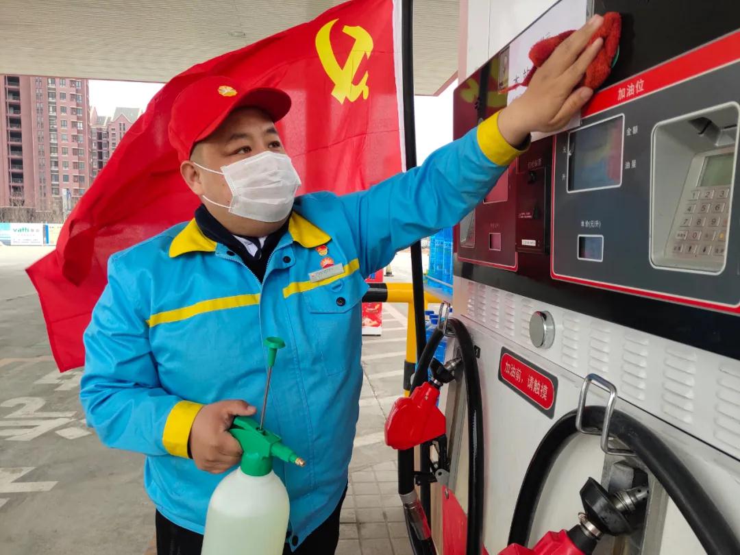 我來自中國石油天津銷售,我在迎賓路加油站現場,為黨慶生。