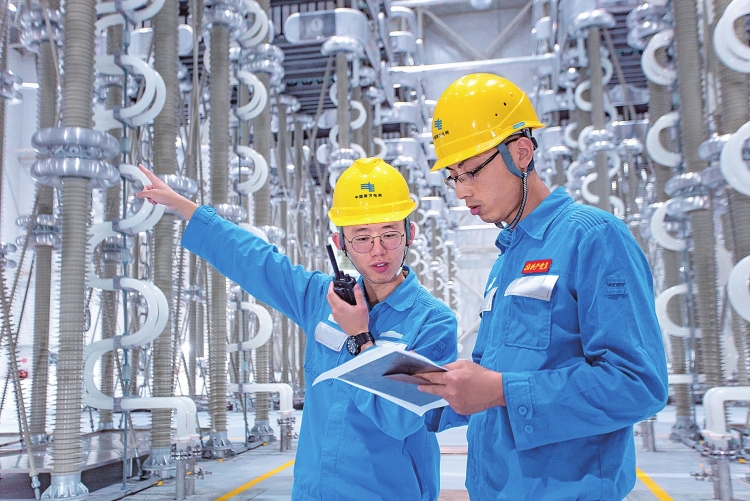 龍門站極2低端換流器系統調試前,生產準備組正在檢查設備狀態。