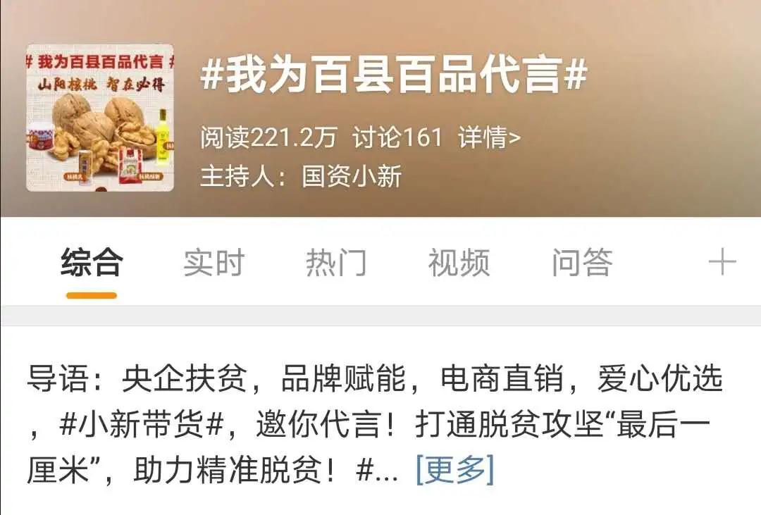 “百(bai)縣(xian)百(bai)品央(yang)字號(hao)”、“小新(xin)帶貨”、“我為百(bai)縣(xian)百(bai)品代言”等微博(bo)話(hua)題量超過1500萬。