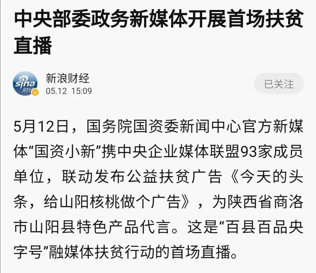 直播中(zhong)(zhong),中(zhong)(zhong)央(yang)企業紛紛向山陽核桃(tao)伸出援手(shou)