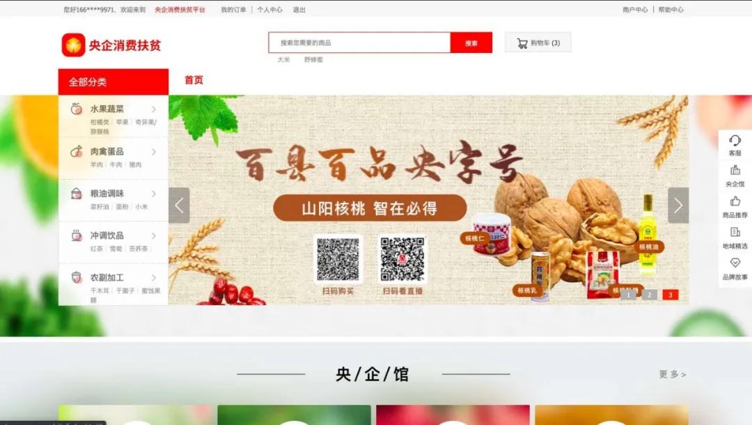 5月(yue)12日,國務院國資委央企(qi)消(xiao)費扶(fu)貧(pin)電商平臺正式上線,以“拓(tuo)展(zhan)農(nong)民增收渠道、穩定(ding)農(nong)村脫貧(pin)成果、提(ti)升央企(qi)扶(fu)貧(pin)成效”為目(mu)標,全(quan)新構建了“185”智能(neng)服務生態,開設央企(qi)扶(fu)貧(pin)館92家(jia),上架貧(pin)困縣農(nong)特產品(pin)1500多種。配合此次直(zhi)播帶貨,央企(qi)消(xiao)費扶(fu)貧(pin)電商平臺還(huan)在免费菠萝视频app下载置(zhi)頂了山陽核桃(tao)購(gou)買(mai)專區(qu)。
