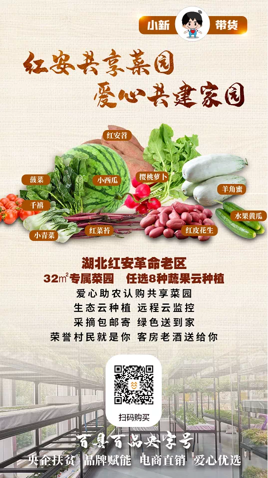 本場直播間帶貨(huo)的產(chan)品是一份你向往的田園生活,更是愛的傳(chuan)遞(di)和真情的幫助。你們愛心認購(gou)的共享(xiang)菜(cai)園,讓湖北紅(hong)安希(xi)望小(xiao)鎮更有希(xi)望。