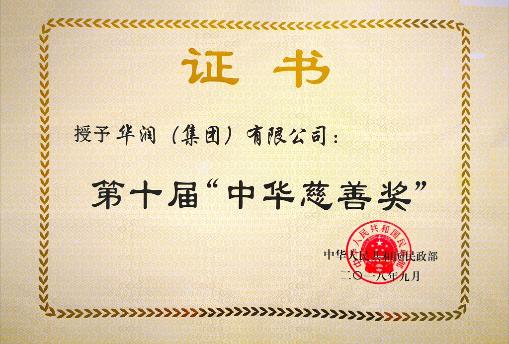 2018年9月(yue)13日(ri),在(zai)由(you)民政部(bu)舉辦的第(di)十屆(jie)“中(zhong)(zhong)華慈(ci)善獎(jiang)”表(biao)彰大會上,華潤集團榮(rong)獲第(di)十屆(jie)“中(zhong)(zhong)華慈(ci)善獎(jiang)”捐贈企業(ye)殊榮(rong)。“中(zhong)(zhong)華慈(ci)善獎(jiang)”每兩年評選表(biao)彰一次(ci),是中(zhong)(zhong)國公益(yi)慈(ci)善領(ling)域中(zhong)(zhong)的最高政府獎(jiang)。