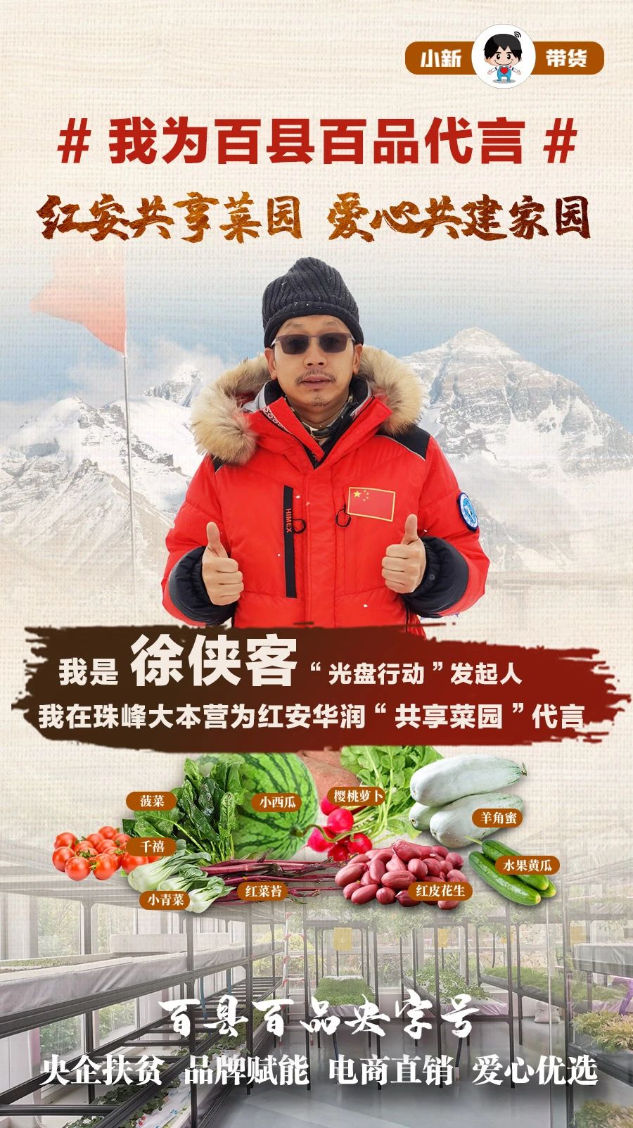 5月23日下午3點,湖北(bei)紅安(an)華潤希望小鎮,紅安(an)共(gong)享菜(cai)園(yuan),愛(ai)心(xin)共(gong)建(jian)家園(yuan)。屆時(shi),“光盤行動(dong)”發起人,“共(gong)享菜(cai)園(yuan)”網(wang)絡代(dai)言人徐俠客,將從遙遠的珠穆朗瑪峰與我們(men)連線,為我們(men)現(xian)場呈(cheng)現(xian)珠峰大本(ben)營的景象。