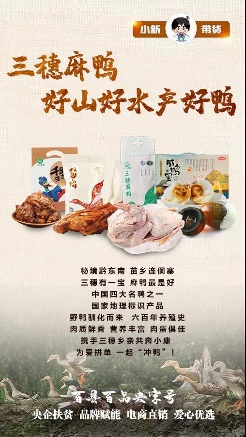 6月(yue)13日,“百(bai)(bai)縣百(bai)(bai)品(pin)央字號(hao)”暨“小(xiao)新帶貨(huo)”融媒(mei)體扶貧行動第五場,走進(jin)華僑城集團定點(dian)幫扶縣——貴州(zhou)省(sheng)黔(qian)東南州(zhou)三穗(sui)縣,直播帶貨(huo)會飛(fei)的三穗(sui)麻(ma)鴨及當地(di)特(te)色農產品(pin)。