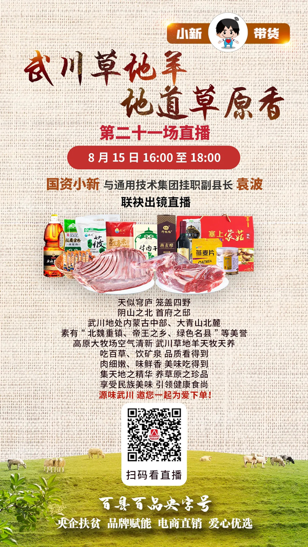 “小新帶(dai)貨”首位央(yang)企董事長出鏡(jing),通(tong)用(yong)技術集團董事長、黨(dang)組書記于旭(xu)波在線推薦來自通(tong)用(yong)技術集團定點扶貧縣(xian)——內蒙古(gu)自治區呼和浩(hao)特市武川縣(xian)的(de)純天(tian)然綠色特產好物(wu)。