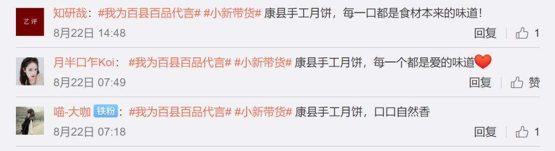 8月(yue)21日起,小(xiao)新全網(wang)征集康(kang)縣手工月(yue)餅廣告語,為康(kang)縣手工月(yue)餅等當地(di)特產(chan)品牌賦能。廣大網(wang)友(you)積極響應(ying),獻智慧更(geng)獻愛心。