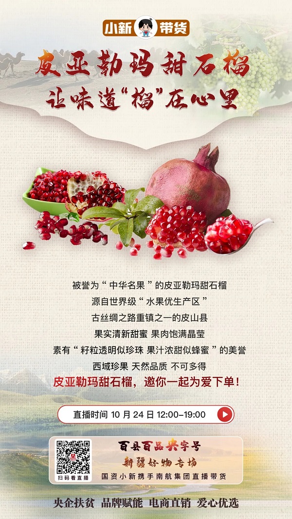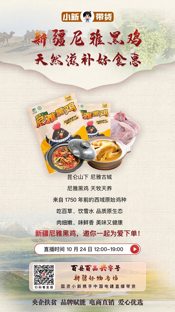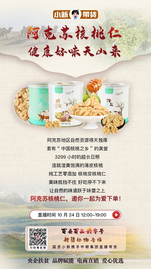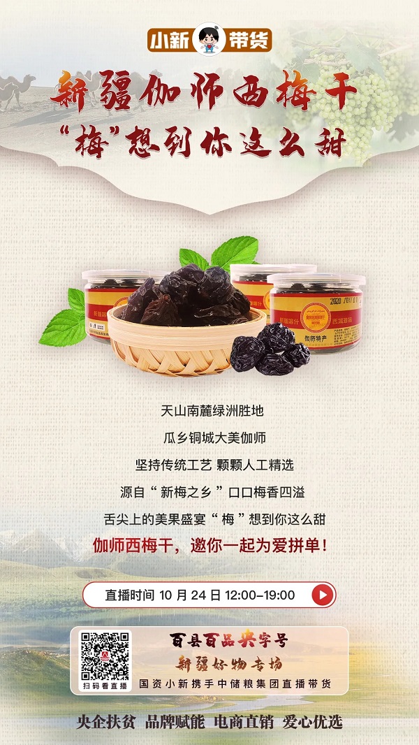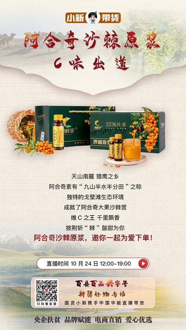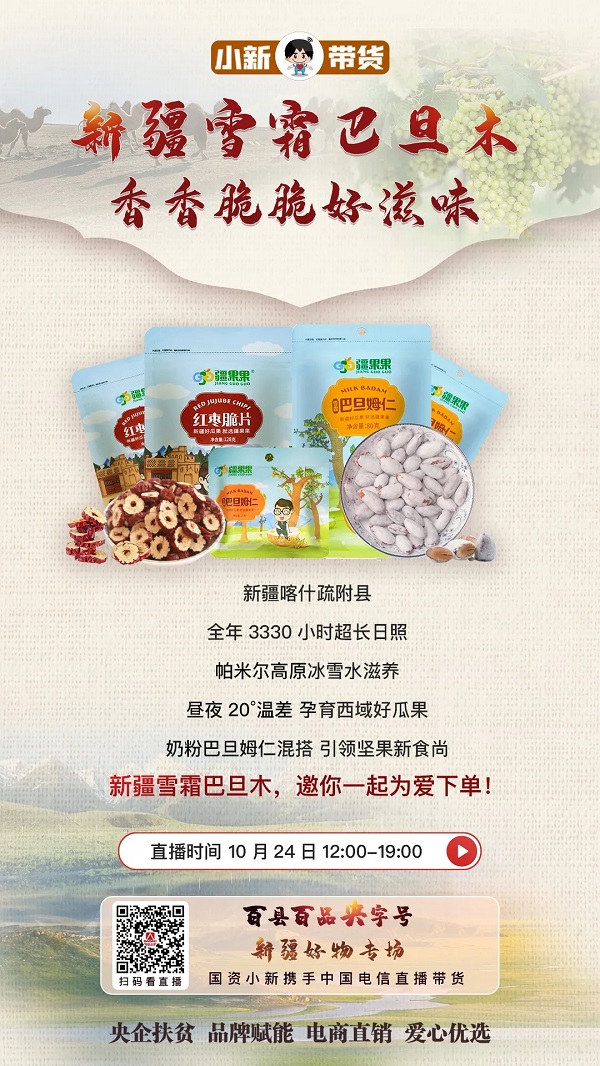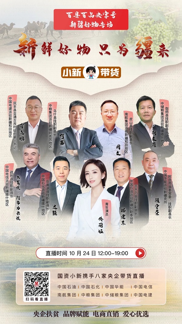 10月24日12:00—19:00,一(yi)起體驗大美新疆特(te)色好物,一(yi)起助力脫貧攻(gong)堅為愛下單,國資小新快手直播間(jian)不(bu)(bu)見不(bu)(bu)散(san)。