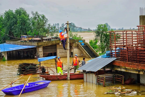 江西上饒鄱陽縣問桂道圩堤決口,國網江西鄱陽縣供電公司緊急為重要站點安裝照明設備。