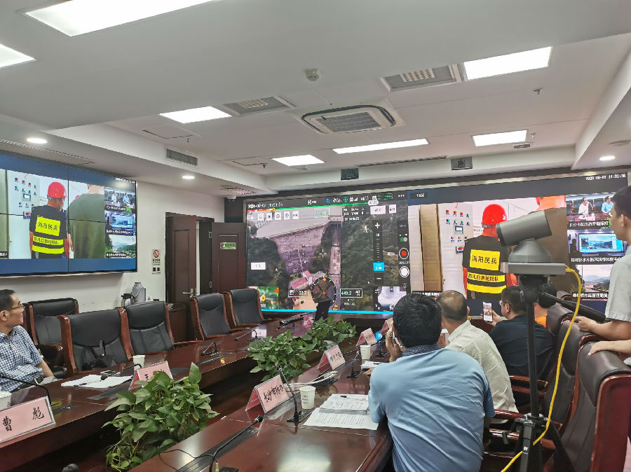 這是中國聯通“5G+無人機空地人一體化”的防汛實時指揮平臺在長沙黃材水庫防汛演練中的實景呈現。在當前防汛搶修中,演練步入了實戰,中國聯通與湖南省水利廳聯合利用5G+無人機開展防汛巡檢。省水利廳通過聯通5G+無人機進行統一調度,對長沙、岳陽和益陽轄區內的長江流域及洞庭湖洪區進行遠程巡檢、信息實時回傳和遠程防汛指揮。