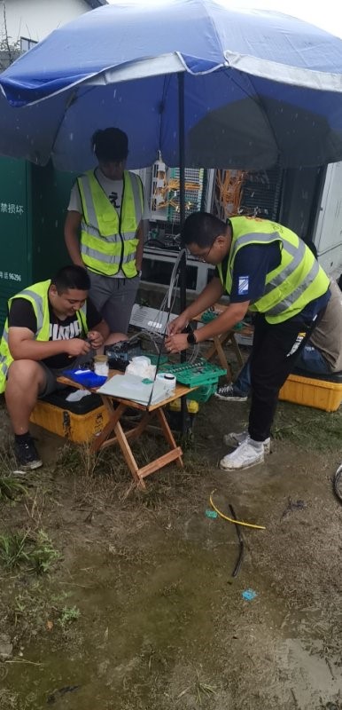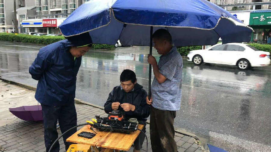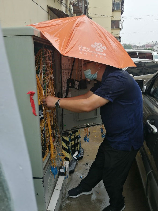 在徐州,7月17日,徐州千禧龍小區用(yong)戶上(shang)網(wang)頻繁掉線不穩定,為減少故障率,提(ti)高用(yong)戶上(shang)網(wang)感知,中國(guo)聯(lian)通交付(fu)中心(xin)應急團(tuan)隊(dui)的(de)小伙子們冒著(zhu)傾(qing)盆(pen)大雨,迅速對小區的(de)網(wang)絡重新優化,經過兩(liang)個多小時的(de)努力,網(wang)絡終于恢復正常。