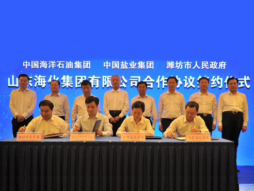 2020年8月12日,中鹽集團與山東省濰坊市人民政府、中國海油集團共同簽署山東海化集團合作協議。本次合作是落實央企專業化整合、加強央地戰略合作、推動央企產業優勢參與區域經濟發展的有力舉措。中鹽集團將積極發揮鹽化工方面優勢,持續推進山東海化集團鹽化工產業轉型升級。