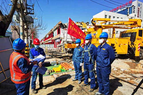 國網山東濟寧供電公司黨員突擊隊開展220千伏重點工程建設攻堅。
