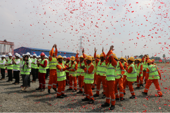 雅萬高鐵項目建設者歡慶雅萬高鐵首榀箱梁架設成功