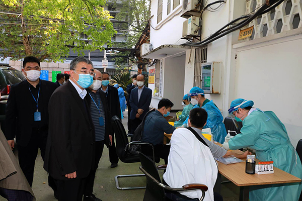 張浩現場組織鐵四院到崗職工開展核酸和血清檢測,累計開展檢測13500余人次。