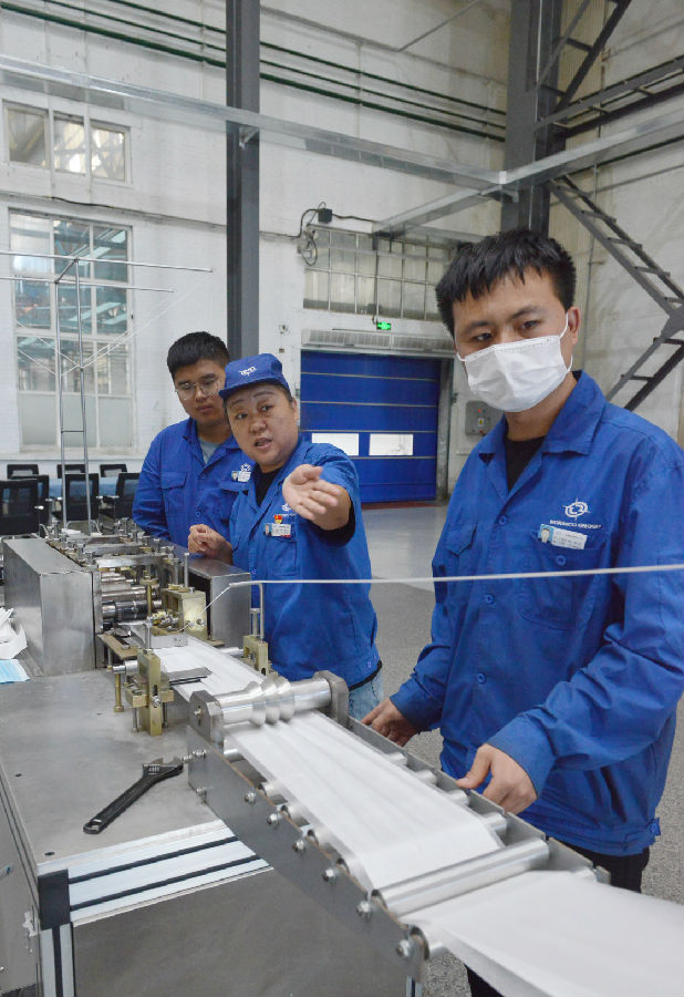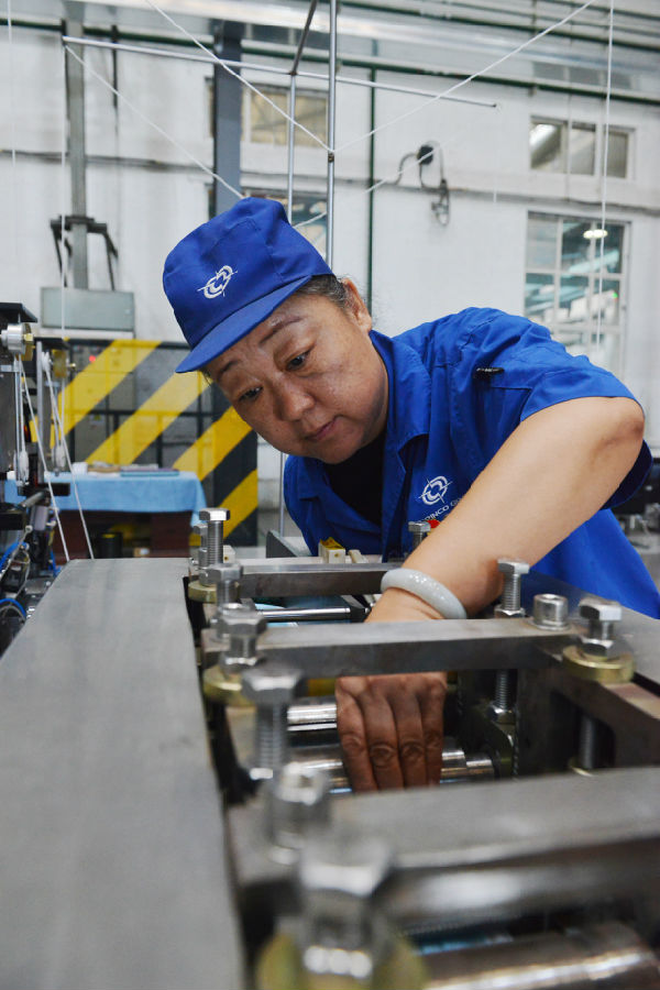 在孟(meng)雪芬(fen)團隊(dui)的共同努(nu)力(li)(li)下,一(yi)機(ji)(ji)(ji)(ji)(ji)集(ji)團僅用10天時間就成(cheng)功實(shi)現首(shou)臺(tai)壓條機(ji)(ji)(ji)(ji)(ji)調試,15天時間完成(cheng)3臺(tai)口(kou)罩(zhao)機(ji)(ji)(ji)(ji)(ji)裝(zhuang)配(pei)(pei),各項(xiang)工(gong)藝(yi)參數達到完美契(qi)合,具備批量化穩定生產能(neng)(neng)力(li)(li)。為提升裝(zhuang)備性(xing)能(neng)(neng)和(he)質量,孟(meng)雪芬(fen)還帶領團隊(dui)持續對口(kou)罩(zhao)機(ji)(ji)(ji)(ji)(ji)升級改造,特別是(shi)自主創新的“一(yi)拖(tuo)二(er)”(一(yi)臺(tai)本體機(ji)(ji)(ji)(ji)(ji)配(pei)(pei)兩(liang)臺(tai)耳(er)焊機(ji)(ji)(ji)(ji)(ji))式口(kou)罩(zhao)機(ji)(ji)(ji)(ji)(ji),利用翻轉分線原理,充分發揮機(ji)(ji)(ji)(ji)(ji)器效能(neng)(neng),使生產效率實(shi)現了(le)翻番,確(que)保10臺(tai)壓條機(ji)(ji)(ji)(ji)(ji)、10臺(tai)口(kou)罩(zhao)機(ji)(ji)(ji)(ji)(ji)如(ru)期(qi)交付(fu)(fu)用戶(hu),為地方抗擊疫情提供(gong)了(le)設備支持。在研制過程中,由于連(lian)續長時間高(gao)負荷工(gong)作,孟(meng)雪芬(fen)有一(yi)次差(cha)點(dian)暈(yun)倒,可(ke)是(shi)她(ta)只(zhi)是(shi)稍作休息之(zhi)后,又返回了(le)裝(zhuang)配(pei)(pei)現場。在連(lian)續一(yi)個多月(yue)的時間里(li),她(ta)無暇去(qu)看(kan)望年過80歲的老母親,連(lian)和(he)孩子(zi)說(shuo)句話的機(ji)(ji)(ji)(ji)(ji)會都很難。最終“兩(liang)機(ji)(ji)(ji)(ji)(ji)”研制成(cheng)功了(le),孟(meng)雪芬(fen)流下激動的淚水,她(ta)說(shuo)所有的付(fu)(fu)出都是(shi)值得的。