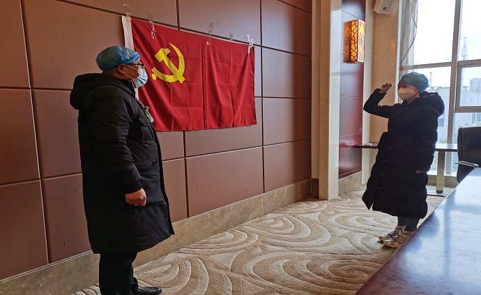 2月(yue)28日,劉曉芳在抗疫一線火線入黨,她在莊嚴(yan)的黨旗下鄭重宣誓,志(zhi)愿加(jia)入中國共產(chan)黨。