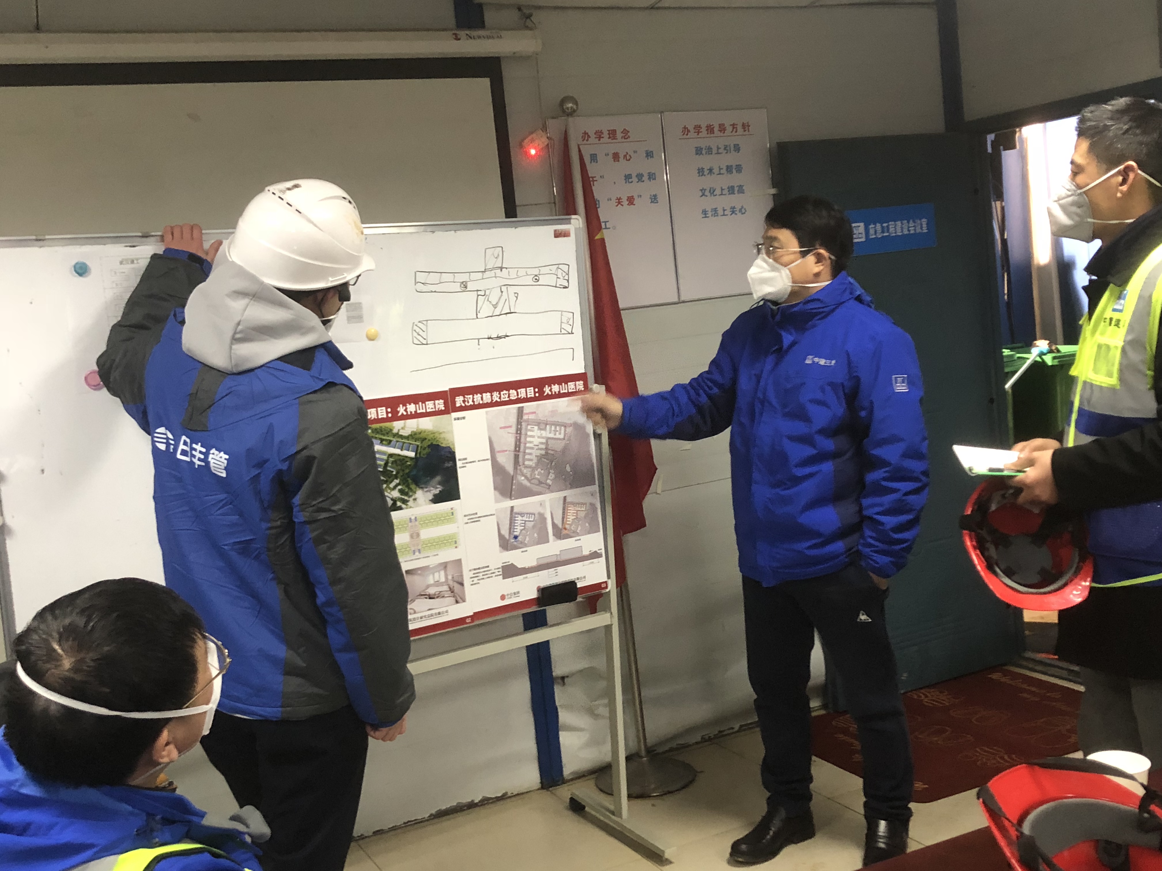 陳衛國第一時(shi)間趕(gan)赴施工現(xian)(xian)場(chang)(chang),連續(xu)組(zu)織召(zhao)開2場(chang)(chang)專題會議直至深夜,在臨時(shi)指(zhi)(zhi)揮(hui)部,他牽頭建立了以(yi)局黨委(wei)主要負責人掛帥(shuai)的應急醫院建設工作領導小組(zu)和局副總(zong)坐(zuo)陣的現(xian)(xian)場(chang)(chang)指(zhi)(zhi)揮(hui)部兩級指(zhi)(zhi)揮(hui)體系,正式(shi)啟(qi)動“戰時(shi)”機制。