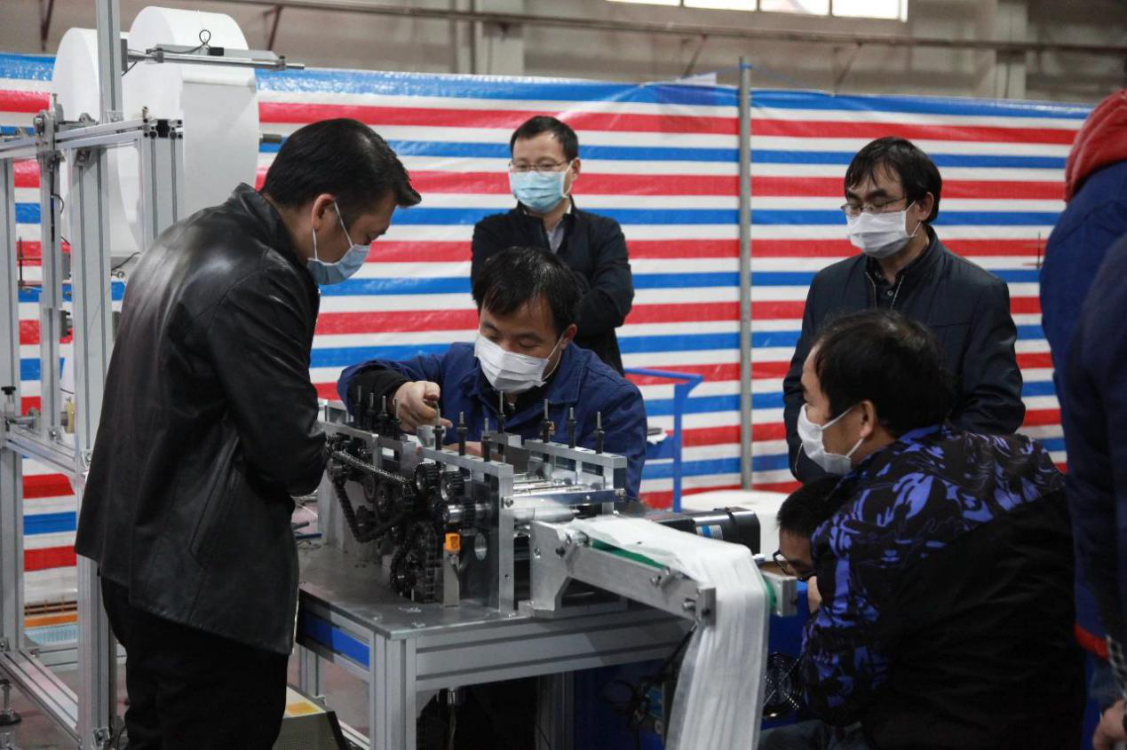 經(jing)過幾天不休不眠的(de)努力,2月18日凌(ling)晨,首(shou)條(tiao)口罩機生產(chan)線終于順利調通并進(jin)入壓力測試。當聽到設備穩(wen)定運轉那種有(you)節奏(zou)的(de)“咔噠”“咔噠”聲音,在場的(de)所有(you)人都(dou)像聽到世(shi)界上最美妙(miao)的(de)聲音!