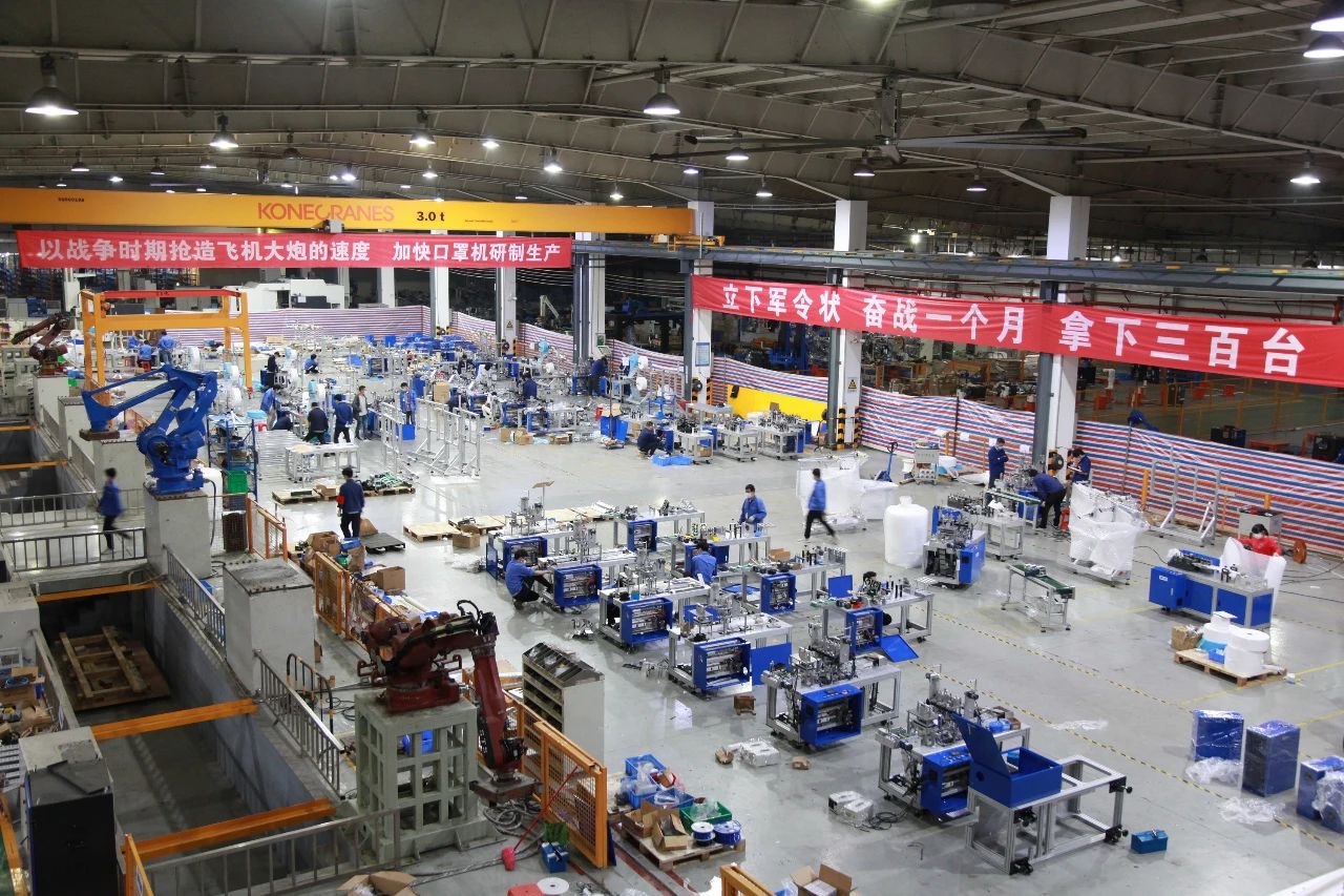 “以戰爭時期(qi)搶造(zao)飛機(ji)大炮(pao)的(de)速(su)度,加快口(kou)罩(zhao)機(ji)的(de)研制(zhi)生產(chan)”的(de)醒目標語高高懸(xuan)掛在車間現場。為了完成“盡快研制(zhi)出優質口(kou)罩(zhao)機(ji),加大我國(guo)口(kou)罩(zhao)供應”這個(ge)國(guo)家使(shi)命,各條戰線的(de)“戰士”陸續集結(jie)……一周內(nei),集結(jie)人數從60增加至150!