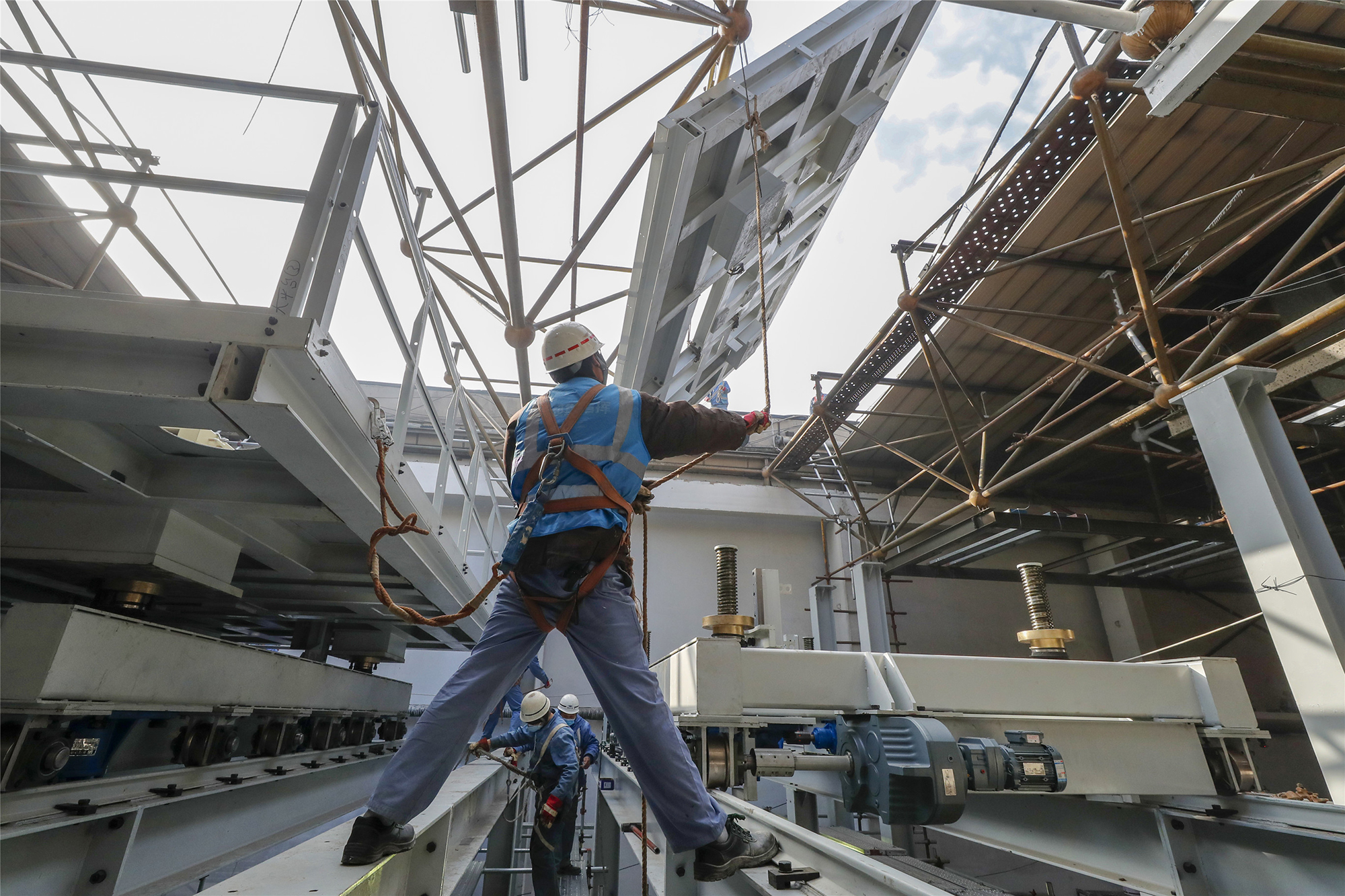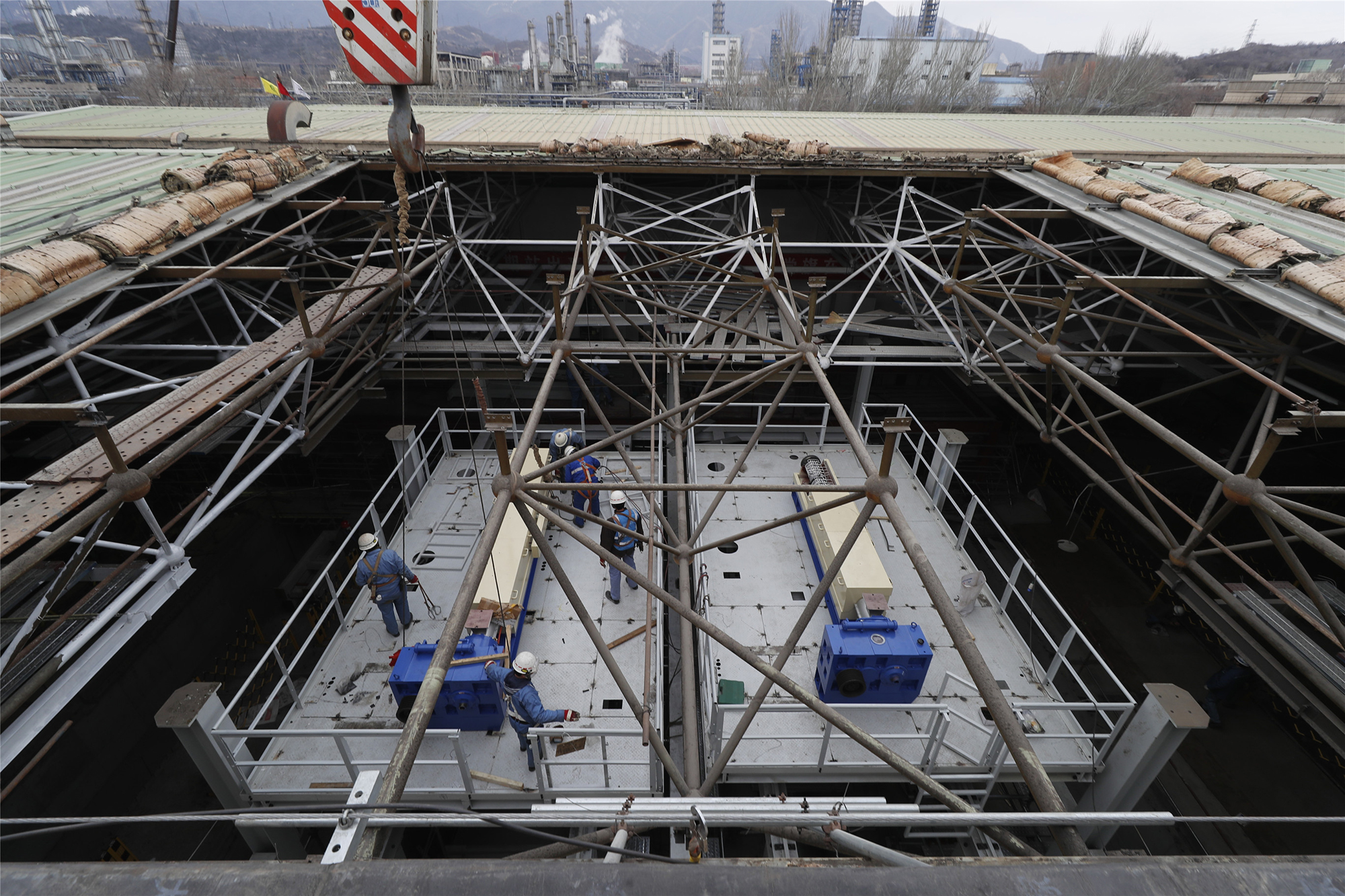 “非常時期,大(da)家都很有干(gan)勁,沒有人(ren)抱怨(yuan)。”戴述春(chun)說。2月29日(ri)凌晨(chen),主廠房(fang)設(she)備(bei)(bei)基礎(chu)澆筑完成(cheng),順利轉入設(she)備(bei)(bei)安裝階段。成(cheng)套設(she)備(bei)(bei)廠房(fang)內,地(di)下有管道作(zuo)業,地(di)面有土建作(zuo)業,平(ping)臺上(shang)(shang)有大(da)型設(she)備(bei)(bei)安裝,空中進(jin)行(xing)(xing)著(zhu)跨地(di)塊吊裝,桁架上(shang)(shang)還進(jin)行(xing)(xing)防(fang)腐(fu)和內裝修施工,600名參建人(ren)員(yuan)輪番(fan)上(shang)(shang)陣,工程(cheng)進(jin)展全程(cheng)受控。