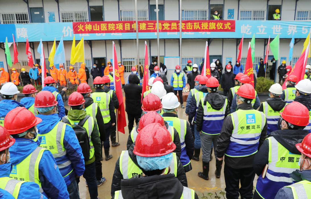 中(zhong)建(jian)三局黨(dang)(dang)(dang)委分別于1月25日(ri)和28日(ri)成立火(huo)神山醫院項(xiang)目(mu)(mu)、雷神山項(xiang)目(mu)(mu)現場指揮(hui)(hui)部臨時黨(dang)(dang)(dang)委和多個(ge)臨時黨(dang)(dang)(dang)支部,為(wei)項(xiang)目(mu)(mu)建(jian)設(she)提供有力(li)(li)保障。工程建(jian)設(she)中(zhong),項(xiang)目(mu)(mu)黨(dang)(dang)(dang)支部充分發揮(hui)(hui)戰斗(dou)(dou)堡壘作用,組織(zhi)成立了14個(ge)黨(dang)(dang)(dang)員突擊隊,廣大黨(dang)(dang)(dang)員同志身(shen)先(xian)士(shi)卒(zu)、主動請戰,團(tuan)結帶(dai)領廣大建(jian)設(she)者無畏逆(ni)行(xing),團(tuan)結奮(fen)斗(dou)(dou),攻(gong)克一個(ge)又(you)一個(ge)極限挑戰和危難(nan)任(ren)務(wu)。真(zhen)正將黨(dang)(dang)(dang)的組織(zhi)力(li)(li)量轉化為(wei)了攻(gong)堅(jian)克難(nan)的戰斗(dou)(dou)力(li)(li)量。