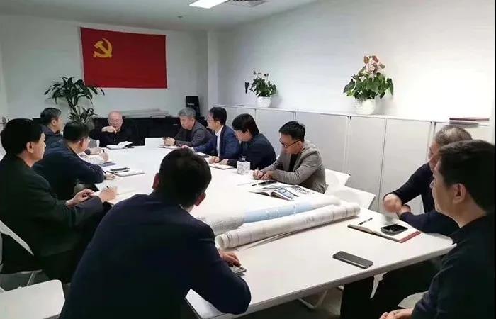 黃錫璆(前排左)和設計團隊成員及施工方在討論小湯山醫院建設方案